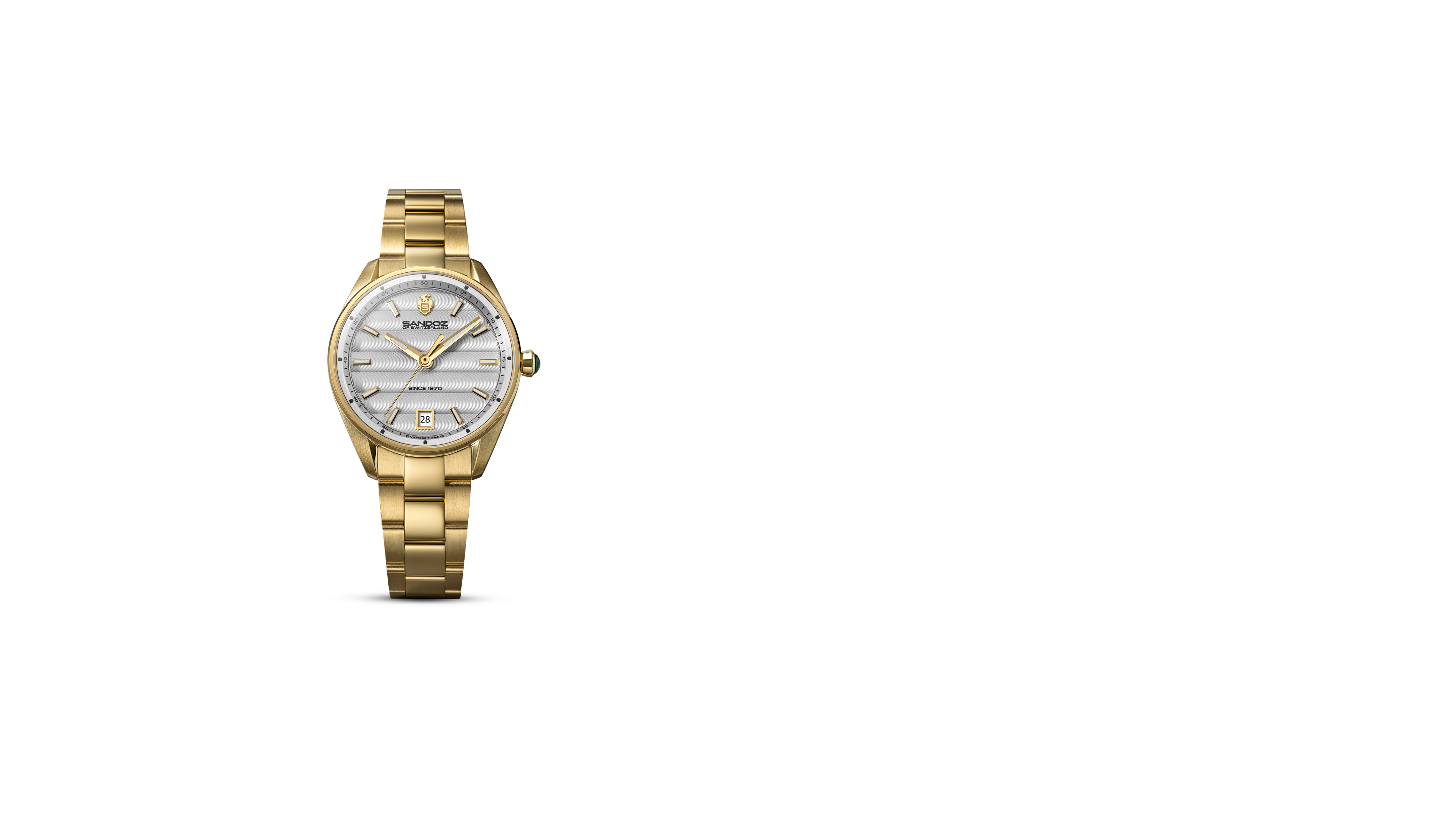 316L Stainless Steel | Gold Plated | 31mm | Signature Green Cabochon on the Crown | 316L Stainless Steel Back Cover