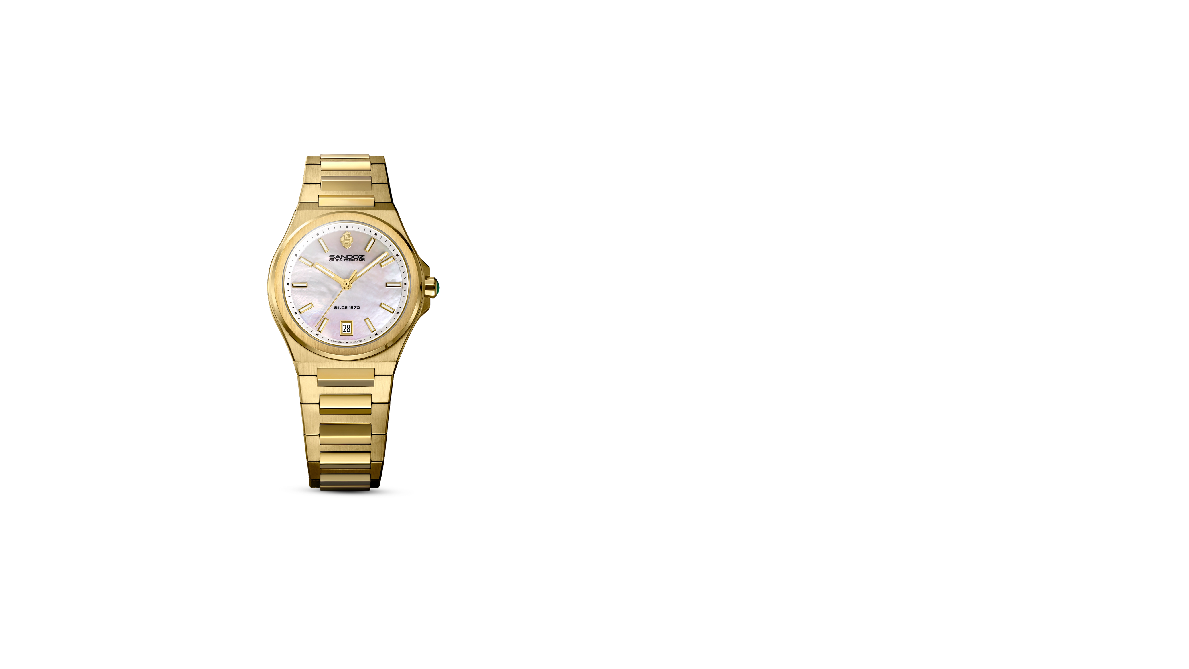 Yellow gold hour markers oozes refined brilliance, while a sporty silhouette introduces a compelling contrast. The line markers keep it grounded in modern design, and a date window at six o'clock pays tribute to the free-spirited Sandoz woman. Modest yet magnetic, this yellow gold watch embodies the quiet purity of Swiss craftsmanship.