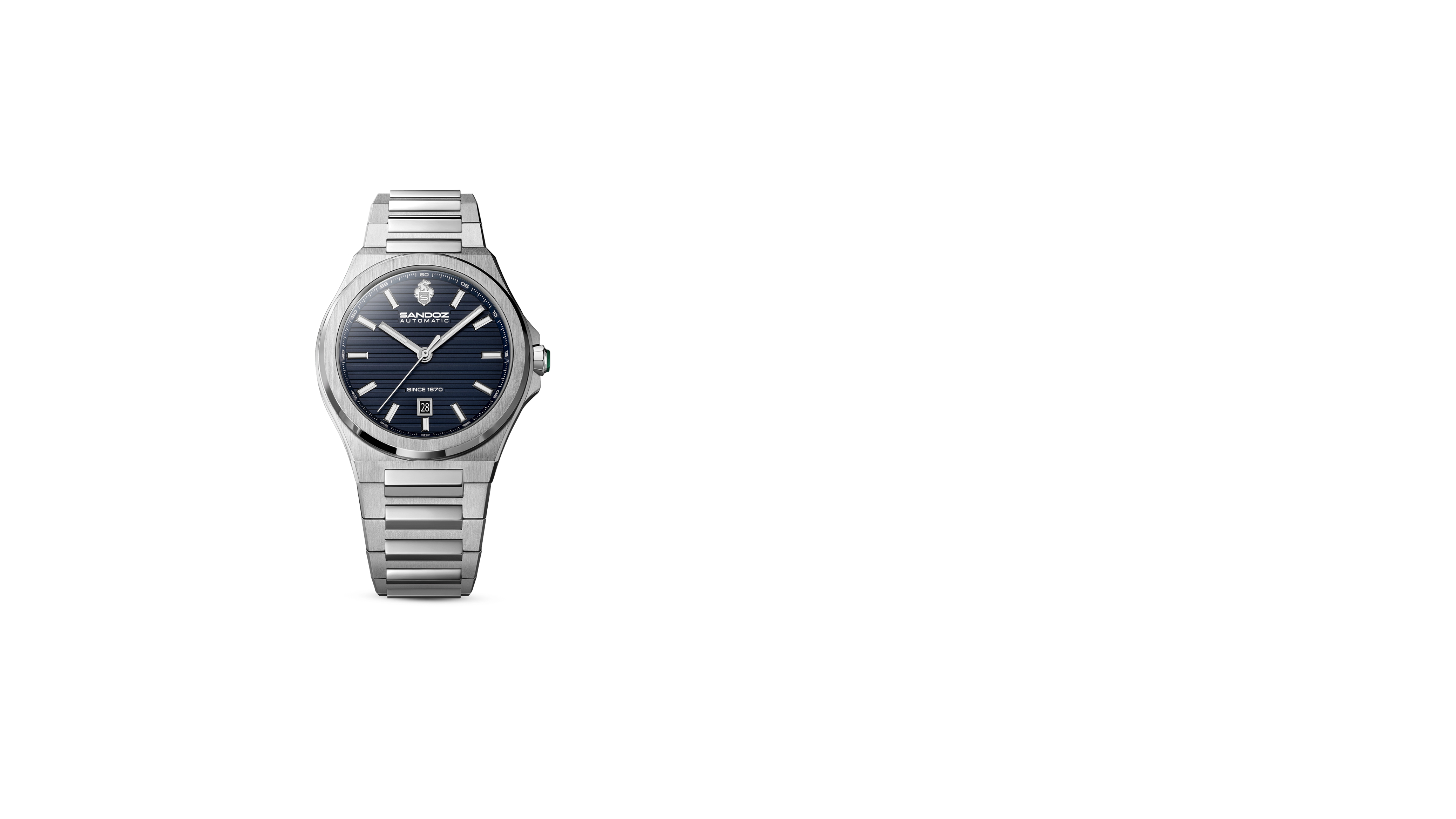 The 42mm case has a bold, modern presence, all clean lines and considered proportions, topped with a flat sapphire crystal that gives it a crisp, architectural feel. The blue dial is quietly assertive, patterned for depth. Luminous silver hands and indexes cut through, offering clarity. Inside, the automatic movement keeps steady time, powering a classic three-hand layout with a date window. On the wrist, the sturdy bracelet adds a refined contrast to the overall design.