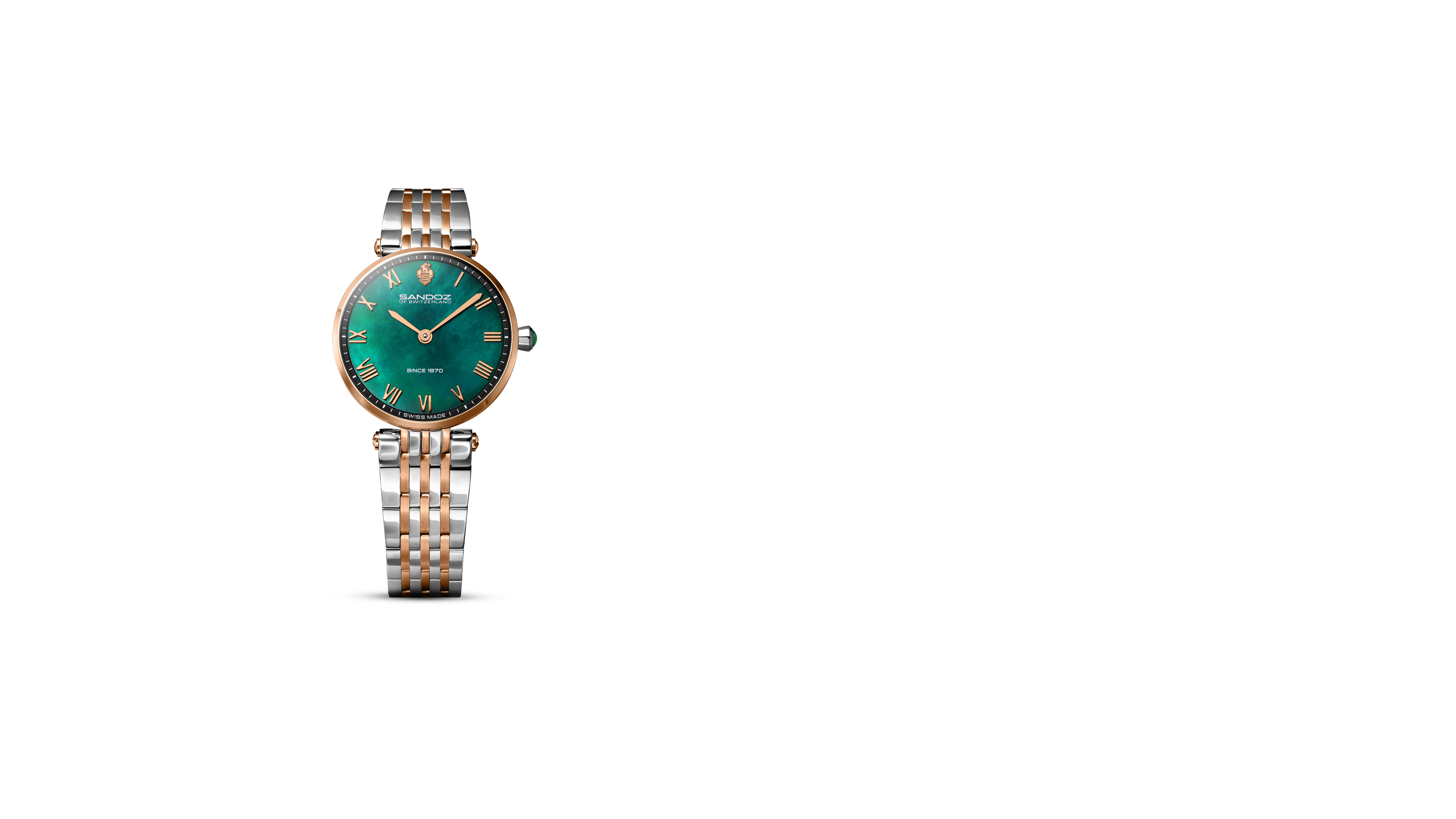 Its green mother-of-pearl dial keeps things simple and refined, framed by slim Roman numerals and warm rose gold hands that offer just enough contrast to stand out. Everything about the design feels balanced, fresh, and gives a sense of ease that speaks to modern femininity. With its minimalist aesthetic and timeless character, the watch is built to go wherever you do - effortlessly.
